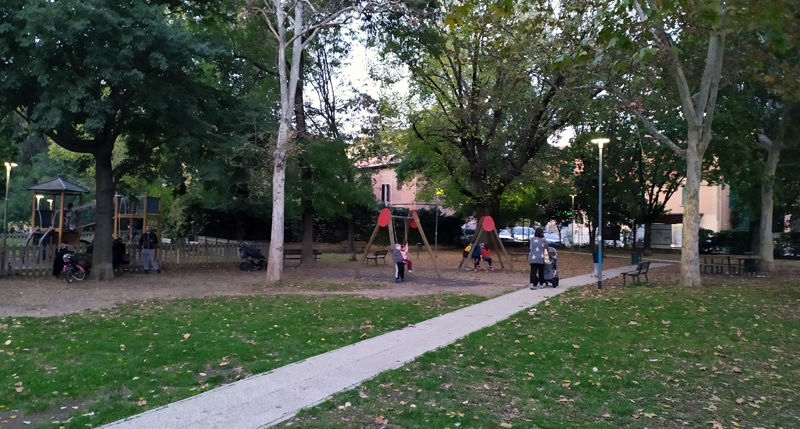 Poca sicurezza dovuta al fatto che il parco costeggi una strada molto trafficata (Via della Liberazione) senza delle barriere